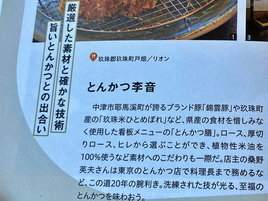 料理が出てくるまで店内に置いてあった大分県のグルメ雑誌を読んでいたら、このお店が載っていましたが、店長は東京のとんかつ店で料理長を務めていた、この道20年の腕利きの料理人なんですね。