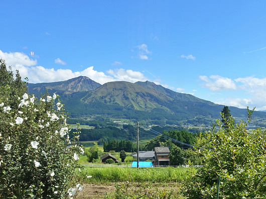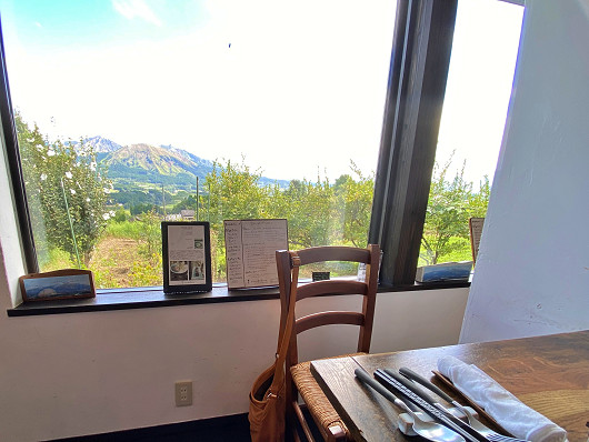 そして窓からは雄大な阿蘇山も見えました。こんなロケーションの席なら何を食べても美味しいでしょうね。