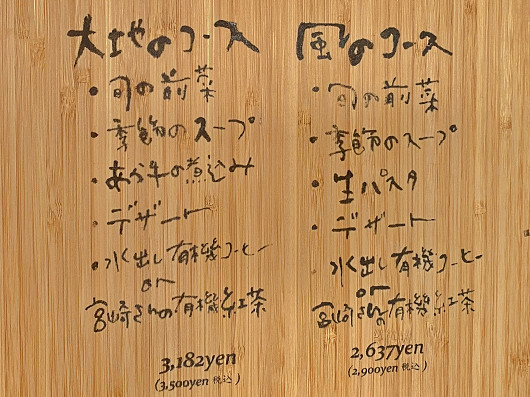 ここではコース料理は「大地のコース」と、「風のコース」の2種類のみで、私たちは「大地のコース」を注文しました。
