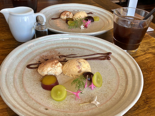 ドリンクはコーヒーか紅茶が選べたので水出し有機コーヒーにしました。そしてデザートは和栗のムースといちじくのアイスでした。