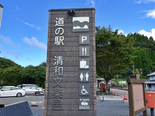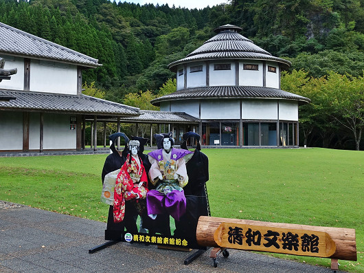 国道218号へ出たら高千穂方面へ進んで、しばらくすると山都町で2番目の道の駅となる「清和文楽邑(せいわぶんらくむら)」に到着しました。ここはちょっと変わった名前の道の駅ですが、ここでは江戸時代から続く文楽(人形浄瑠璃)を常設設備で上演しています。