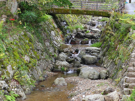 一対の狛犬が建っている橋の下には清流が流れていました。この下流には釈迦院川にかかる「年称橋」、「新年称橋」、「二俣渡」があるので、ここは釈迦院川の源流になるんでしょうか?