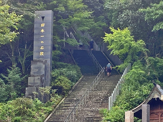ここが3333段の日本一の石段の登り口です。すでに何人かが階段を登っていましたが、駐車場にはほとんど車が停まってなかったので地元の人なんでしょうね?