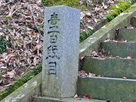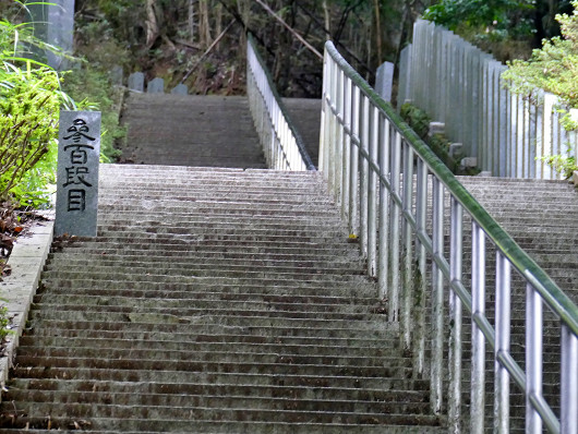 引き返す前に石段の上のほうを望遠で撮影したら300段目の石柱が見えました。