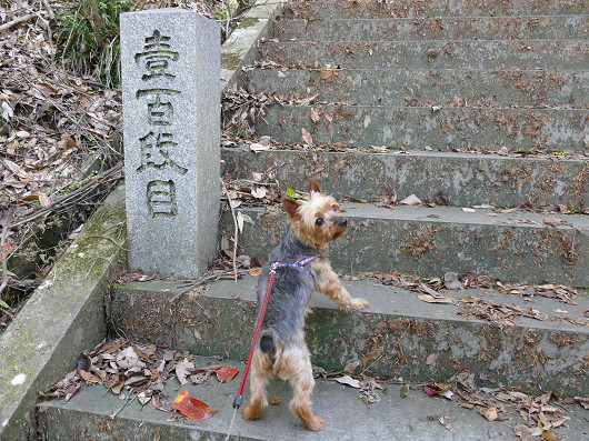 この画像は7年前にりゅう君とここを訪れた時のものですが、この時のりゅう君はリードが伸びきるほど先になって石段を駆け上がって行って、100段目で振り返って私たちが登って来るのを待っていたんですよね。