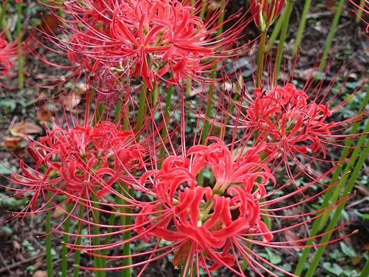 古墳の近くではこの様に満開のような彼岸花ですが、古墳の反対側の国道側に廻るとまだ蕾ばかりだったので、先日ブログに載せた白いヒガンバナと同様に、今年の開花はちょっと遅れ気味なのかもしれませんね?