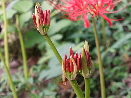 この時はまだこの様な蕾がたくさんあったので、三連休辺りが満開と思われますが、台風14号が接近しているので無事に咲いてくれるか心配ですね。昨年ここを訪れた時には台風の影響で大部分の彼岸花が倒れていましたが、その時の台風も今年と同じで14号だったんですよね。