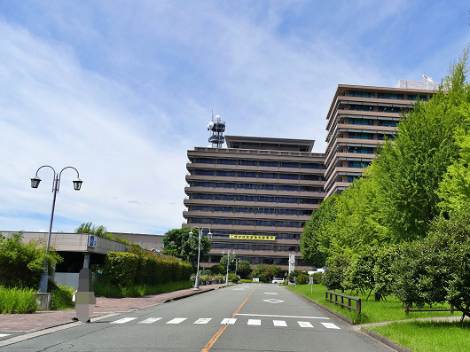 正面に見える建物が熊本県庁で、左端にある低い建物は県庁南側立体駐車場ですが、ここは2時間までは無料なのでここに車を停めました。