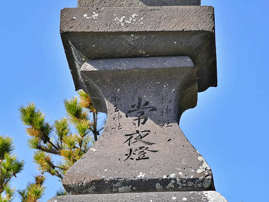 近くまで行って眺めてみると石灯籠のようなものには「常夜灯」と刻まれていました。常夜灯とは名前の通り一晩中灯しておく明りのことで、灯台のような役割をしているものです。