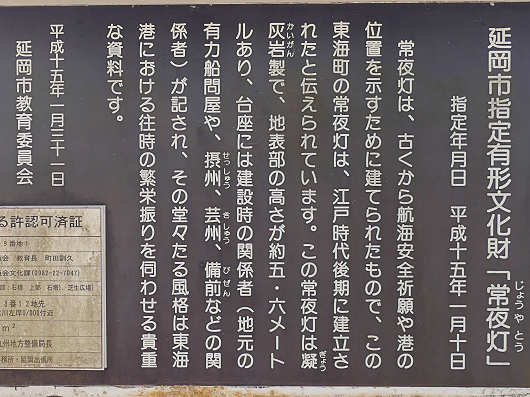 ここには説明板もあって、この常夜灯は江戸時代後期に建立されたと書かれていて、延岡市指定有形文化財にも指定されていました。