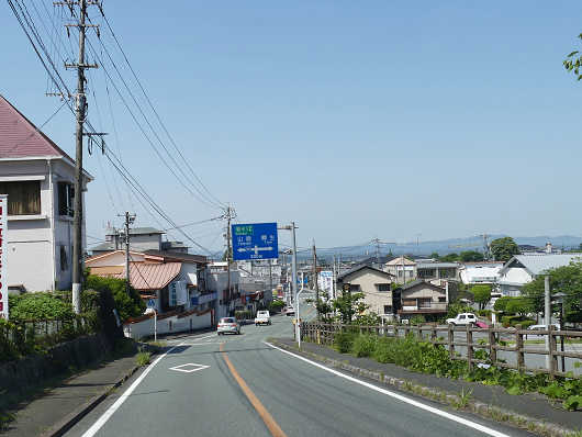 菊地神社からは下り坂のカーブを何度か曲がると道路は直線になって、阿蘇北外輪山の稜線から延々と続いていた下り坂の道がようやく終わって平地へと出ます。道路の左側はホテル、旅館が立ち並ぶ菊池温泉の旅館街ですが、右側へ入ったところが次の目的地になります。