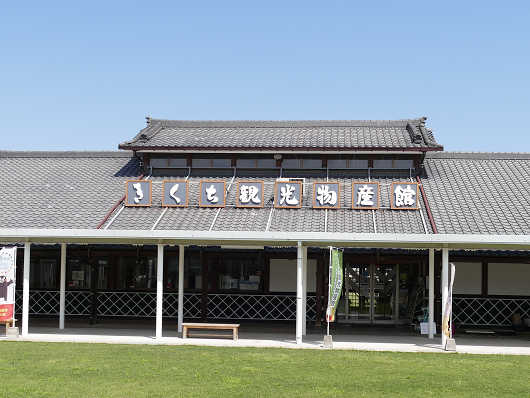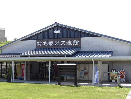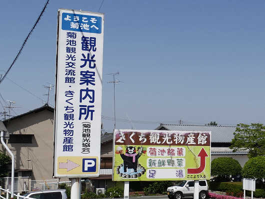 ここは駐車場の入口に「きくち観光物産館」と、観光案内所「菊池観光交流館」と書かれた看板が立てられた菊池市の観光の拠点施設です。