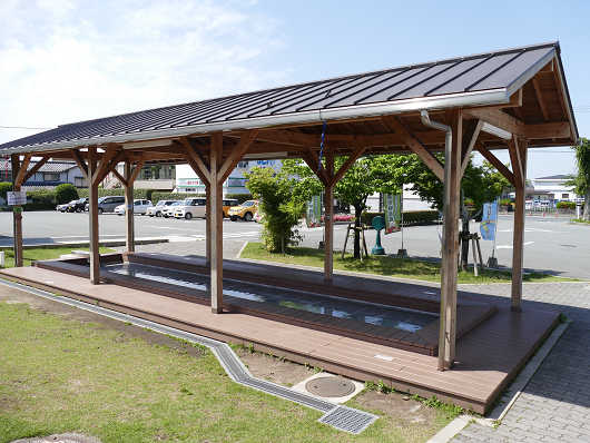 物産館へ向かう途中には足湯があります。このすぐ横にはもう一つ同じ大きさの足湯があるので、観光客が多い日でも入れないことはまず無いでしょうね。道の駅に足湯があるところはあまり多くはありませんが、長い時間運転を続けて足が疲れた時には、足湯に浸かると血行が良くなって足の疲れが一気に吹き飛ぶのでとてもありがたいですね。